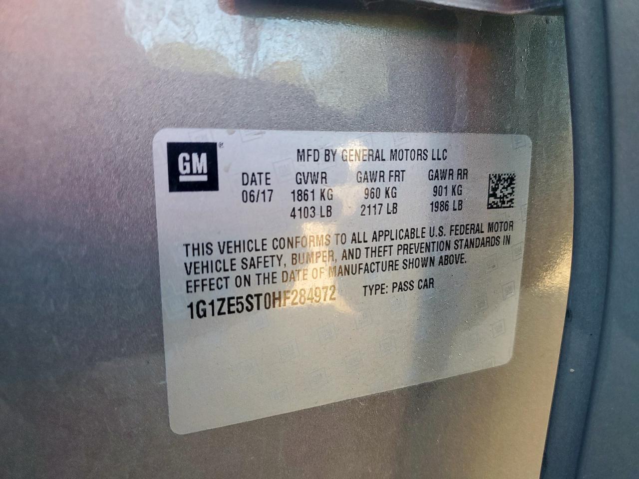 Цвет СерыйЦилиндры 4VIN 1G1ZE5ST0HF284972Состояние ЗаводитсяПовреждение Передняя или задняя