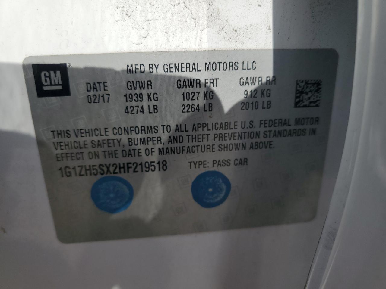 Цвет БелыйЦилиндры 4VIN 1G1ZH5SX2HF219518Состояние Заводится и едет (проверено)Повреждение НезначительныеДата аукциона 2025-11-03
