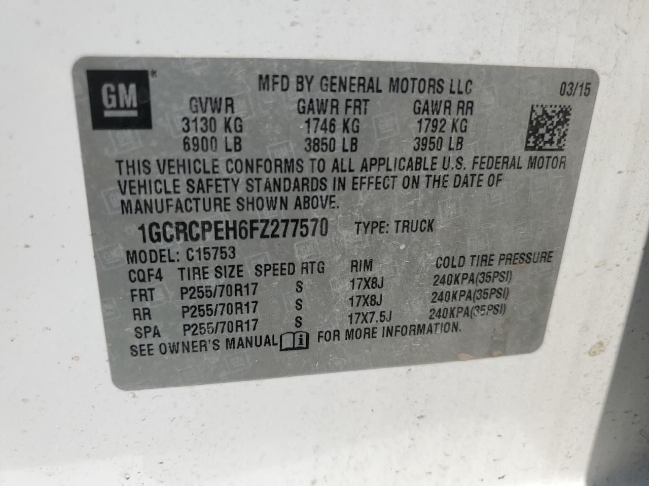 Цвет БелыйЦилиндры 6Привод Задний приводVIN 1GCRCPEH6FZ277570Состояние Заводится и едет (проверено)Повреждение Задняя