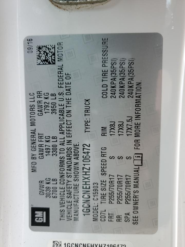 CHEVROLET SILVERADO 4.3 2017 г.в., Задний привод (1GCNCNEHXHZ106472) из США