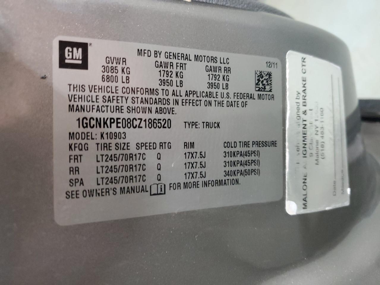 Цвет СерыйЦилиндры 8Привод 4x4 с задним приводомVIN 1GCNKPE08CZ186520Состояние Заводится и едет (проверено)Повреждение НезначительныеДата аукциона 2025-11-04