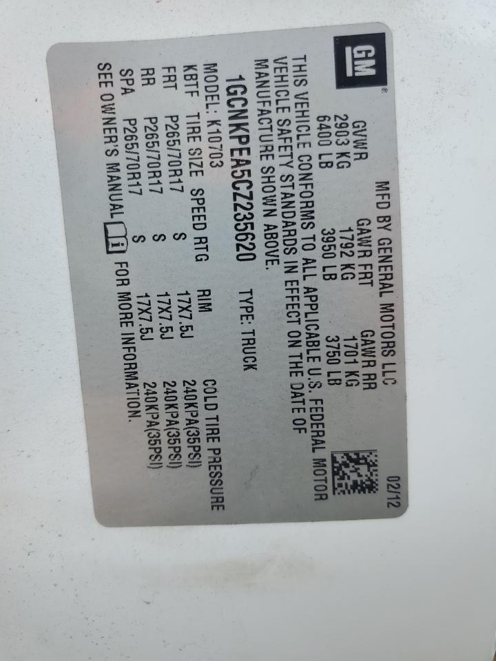 Цвет БелыйЦилиндры 8Привод 4x4 с задним приводомVIN 1GCNKPEA5CZ235620Состояние НеизвестноПовреждение Передняя или задняя