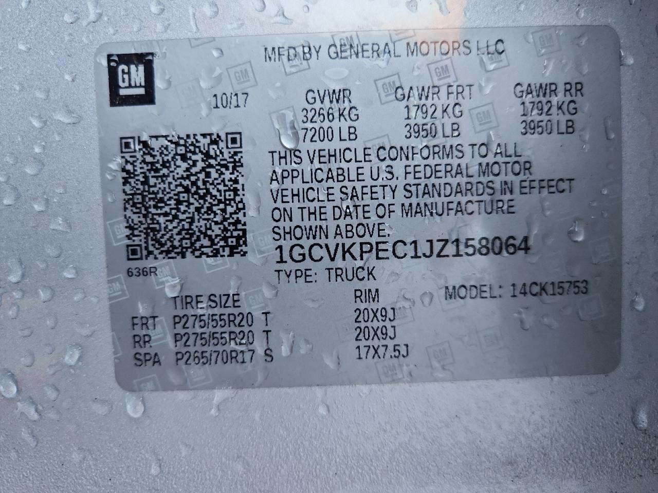 Цвет СеребряныйЦилиндры 8Привод 4x4 с задним приводомVIN 1GCVKPEC1JZ158064Состояние Заводится и едет (проверено)Повреждение Передняя или задняя