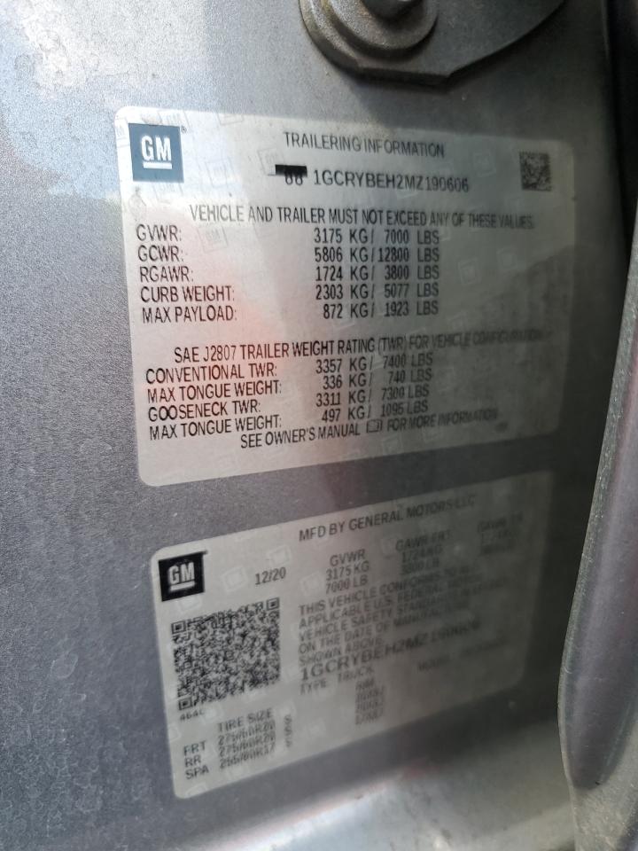 CHEVROLET SILVERADO 4.3 2021 г.в., 4x4 с задним приводом (1GCRYBEH2MZ190606) из США