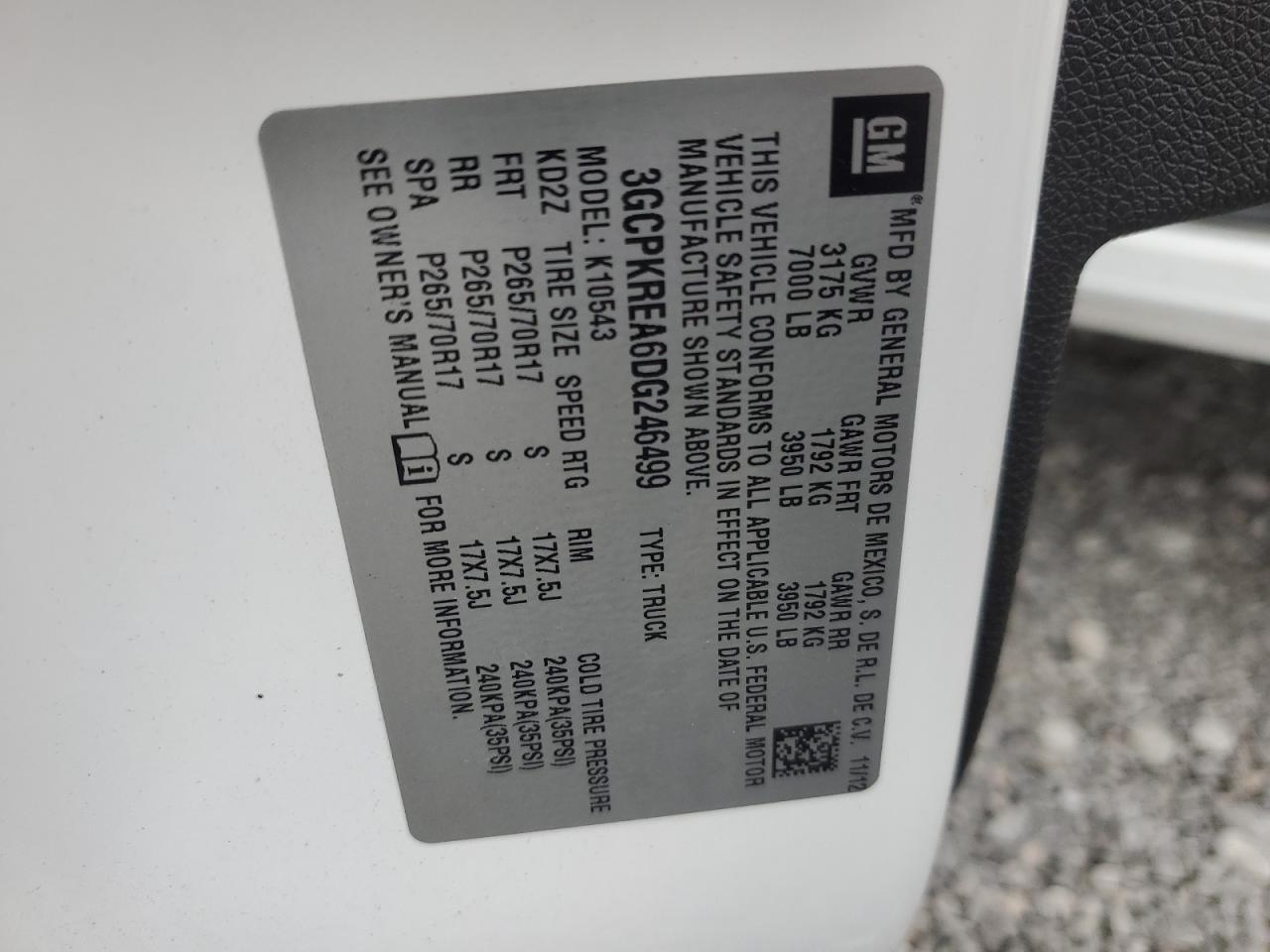 Цвет БелыйЦилиндры 8Привод 4x4 с задним приводомVIN 3GCPKREA6DG246499Состояние НеизвестноПовреждение Передняя или задняя