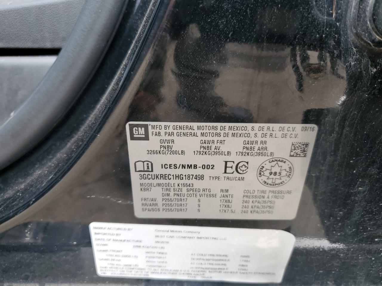 CHEVROLET SILVERADO 5.3 2017 г.в., 4x4 с задним приводом (3GCUKREC1HG187498) из США