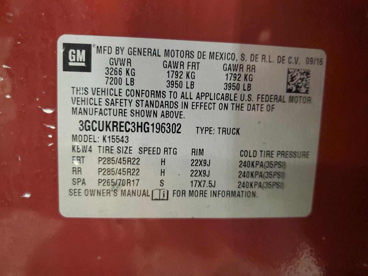 Цвет БордовыйЦилиндры 8Привод 4x4 с задним приводомVIN 3GCUKREC3HG196302Состояние Заводится и едет (проверено)Повреждение НезначительныеДата аукциона 2025-11-05
