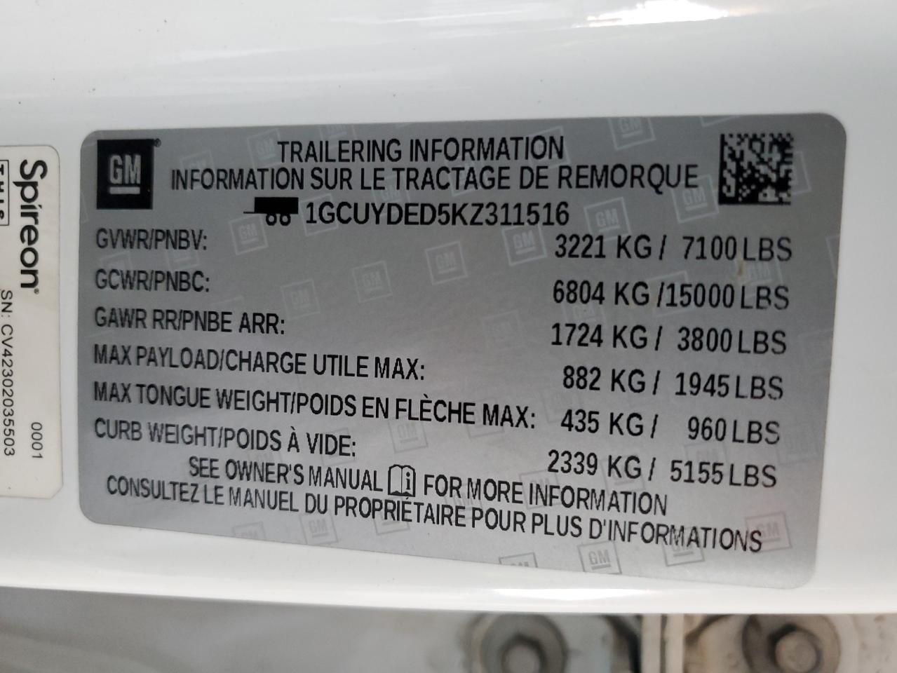 CHEVROLET SILVERADO 5.3 2019 г.в., 4x4 с задним приводом (1GCUYDED5KZ311516) из США