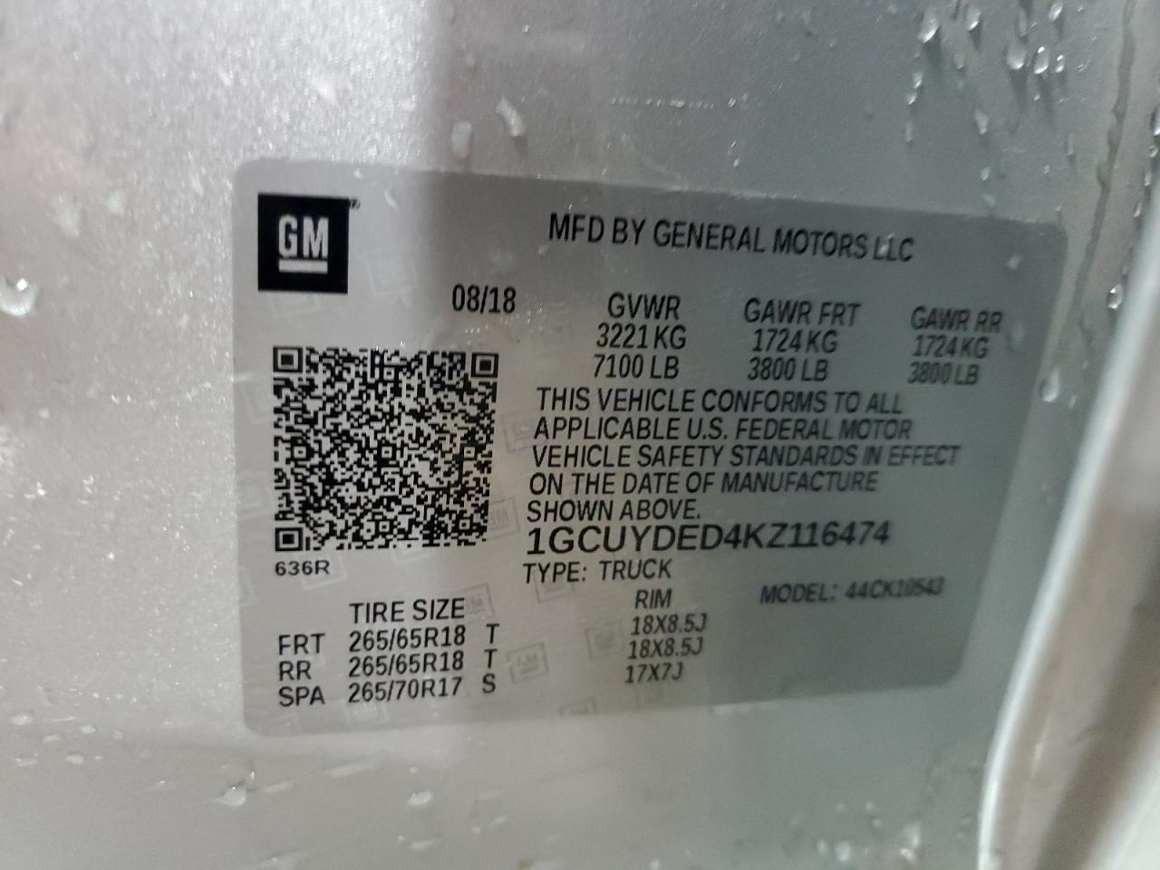 Цвет СеребряныйЦилиндры 8Привод 4x4 с задним приводомVIN 1GCUYDED4KZ116474Состояние Заводится и едет (проверено)Повреждение По бокам