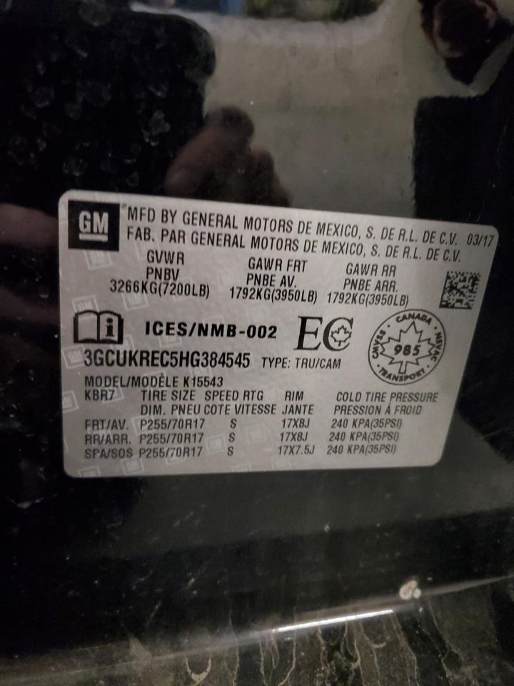 CHEVROLET SILVERADO 5.3 2017 г.в., 4x4 с задним приводом (3GCUKREC5HG384545) из США