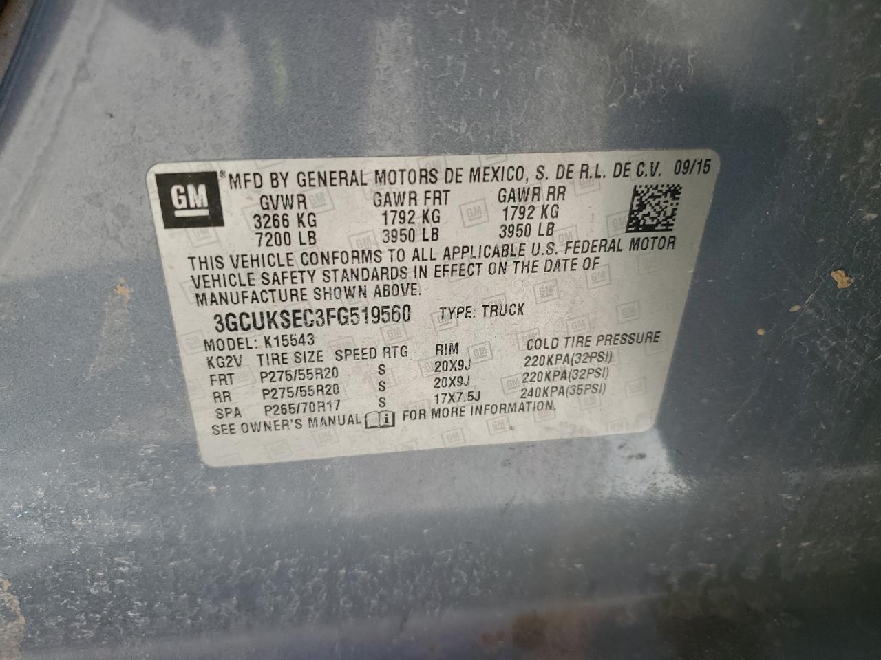 Цвет СинийЦилиндры 8Привод 4x4 с задним приводомVIN 3GCUKSEC3FG519560Состояние Заводится и едет (проверено)Повреждение Передняя или задняя