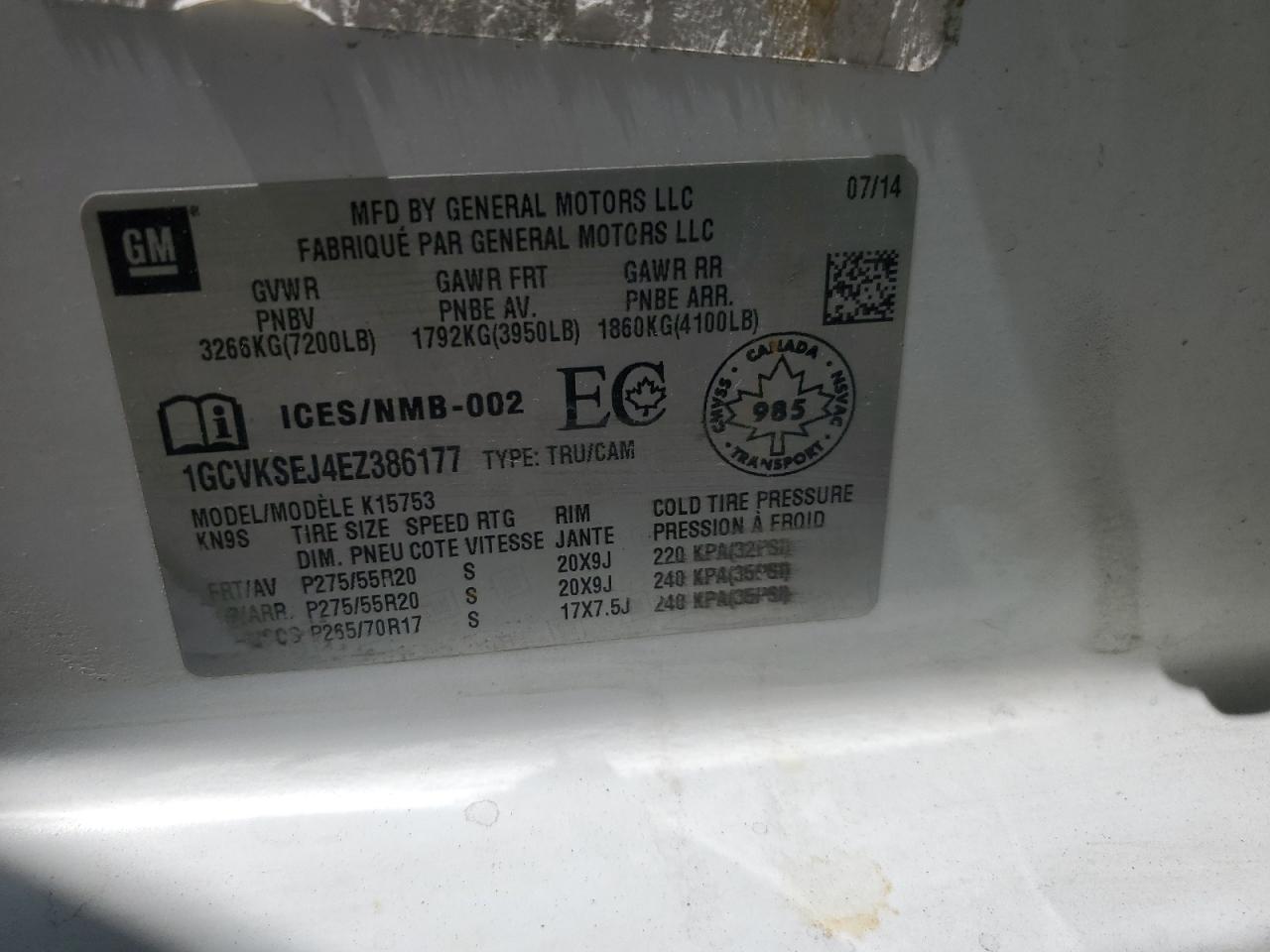 CHEVROLET SILVERADO 6.2 2014 г.в., 4x4 с задним приводом (1GCVKSEJ4EZ386177) из США