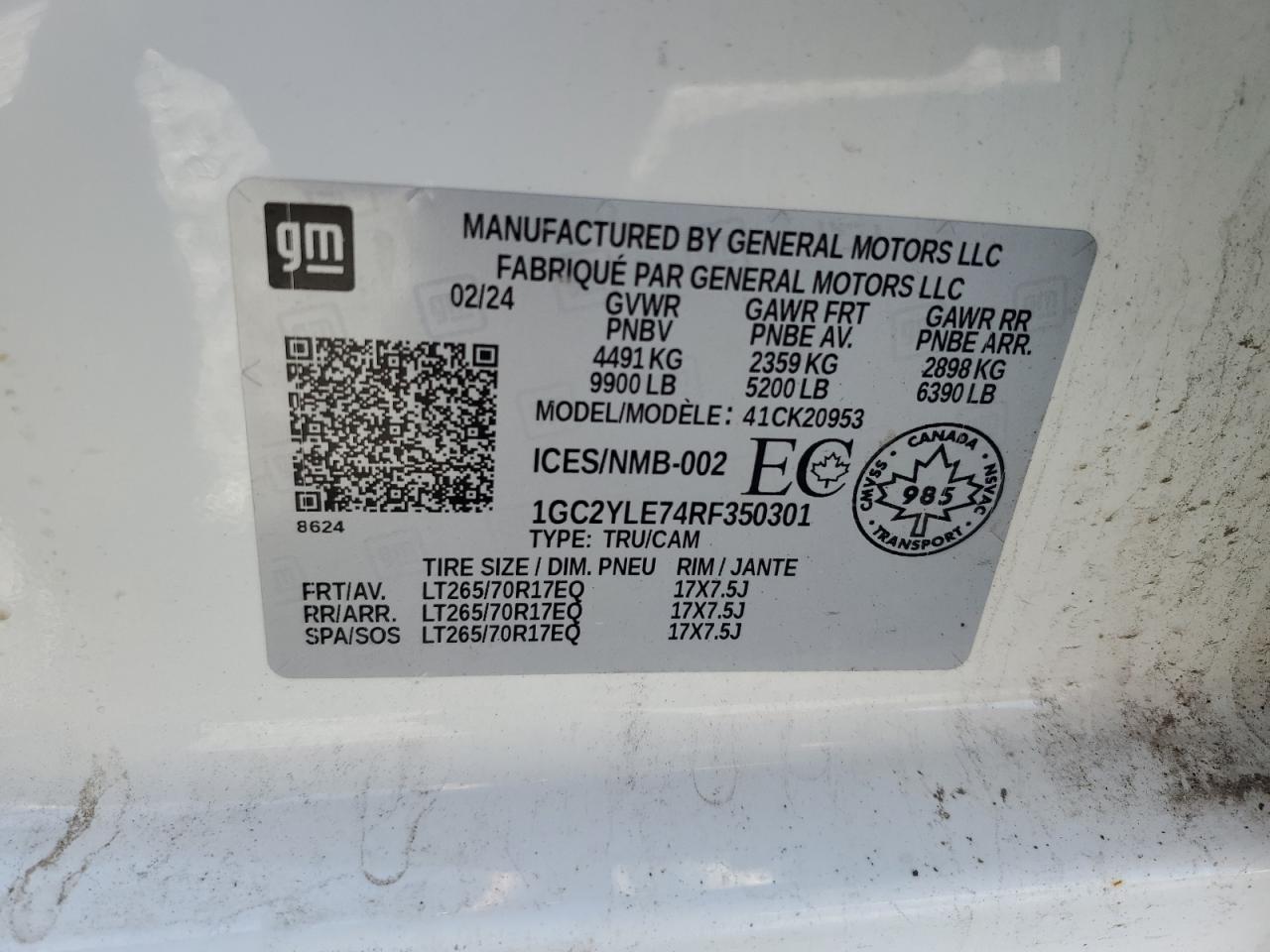 CHEVROLET SILVERADO 6.6 2024 г.в., 4x4 с задним приводом (1GC2YLE74RF350301) из США