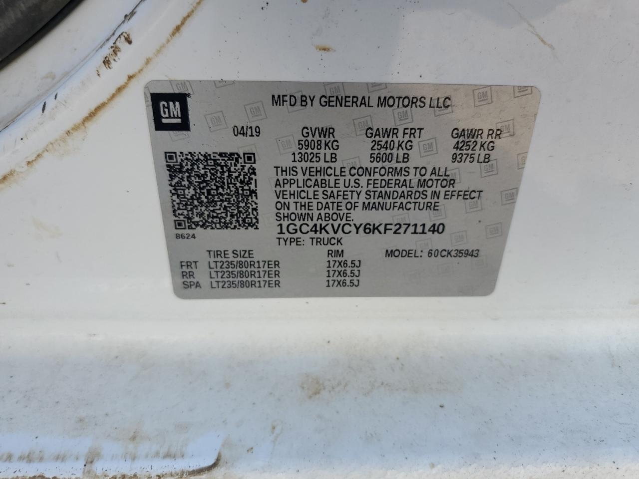 Цвет БелыйЦилиндры 8Привод 4x4 с задним приводомVIN 1GC4KVCY6KF271140Состояние ЗаводитсяПовреждение Передняя или задняя