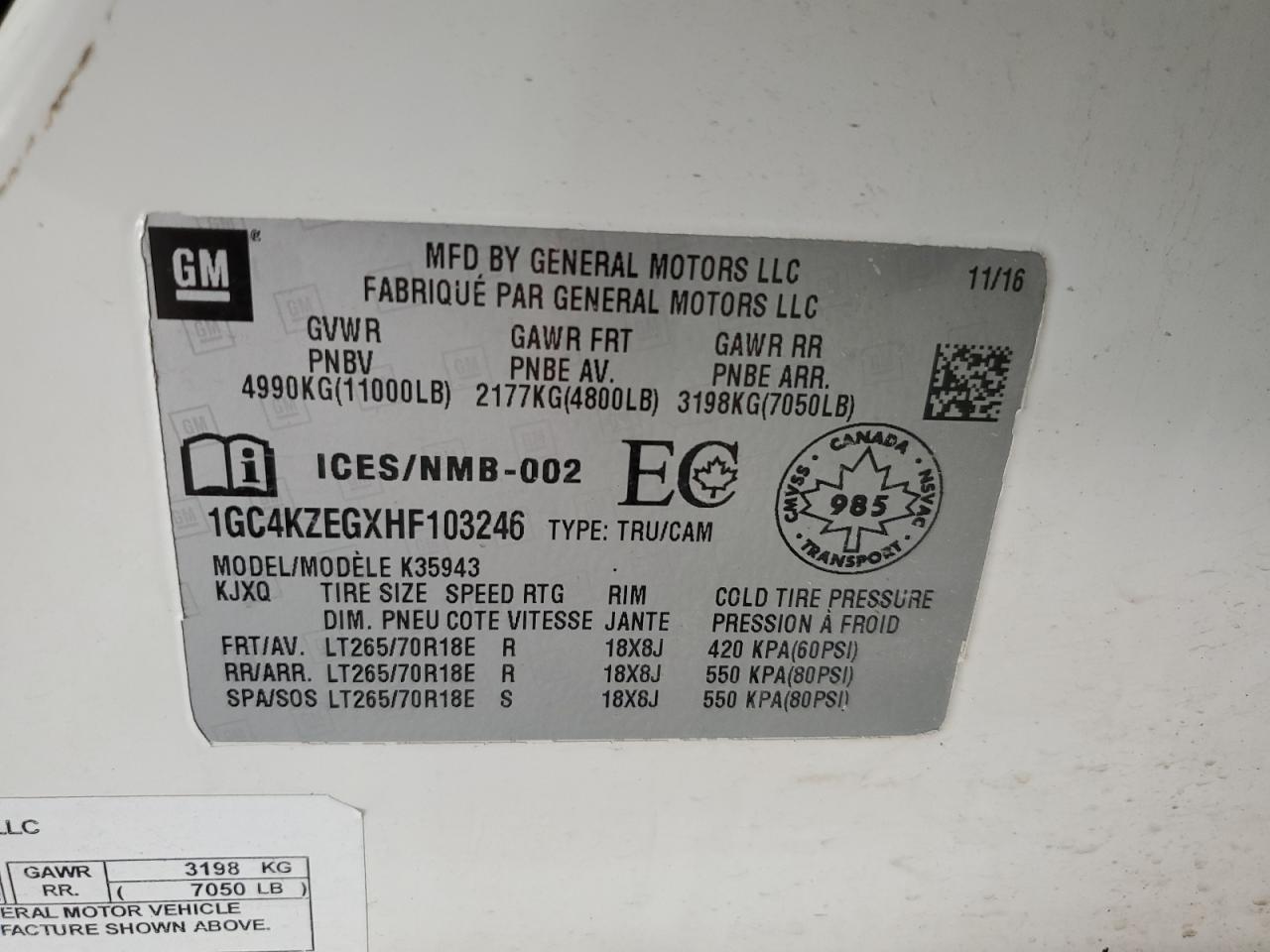 Цвет БелыйЦилиндры 8Привод 4x4 с задним приводомVIN 1GC4KZEGXHF103246Состояние Заводится и едет (проверено)Повреждение Передняя или задняя