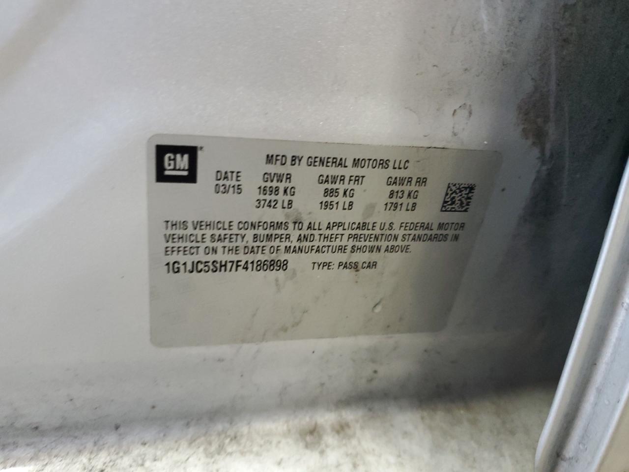 CHEVROLET SONIC 1.8 2015 г.в., (1G1JC5SH7F4186898) из США