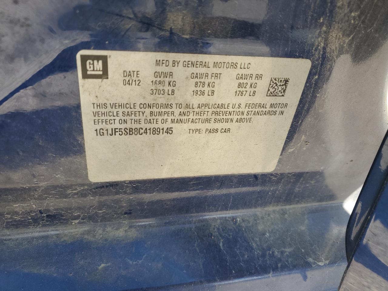 CHEVROLET SONIC 1.4 2012 г.в., (1G1JF5SB8C4189145) из США