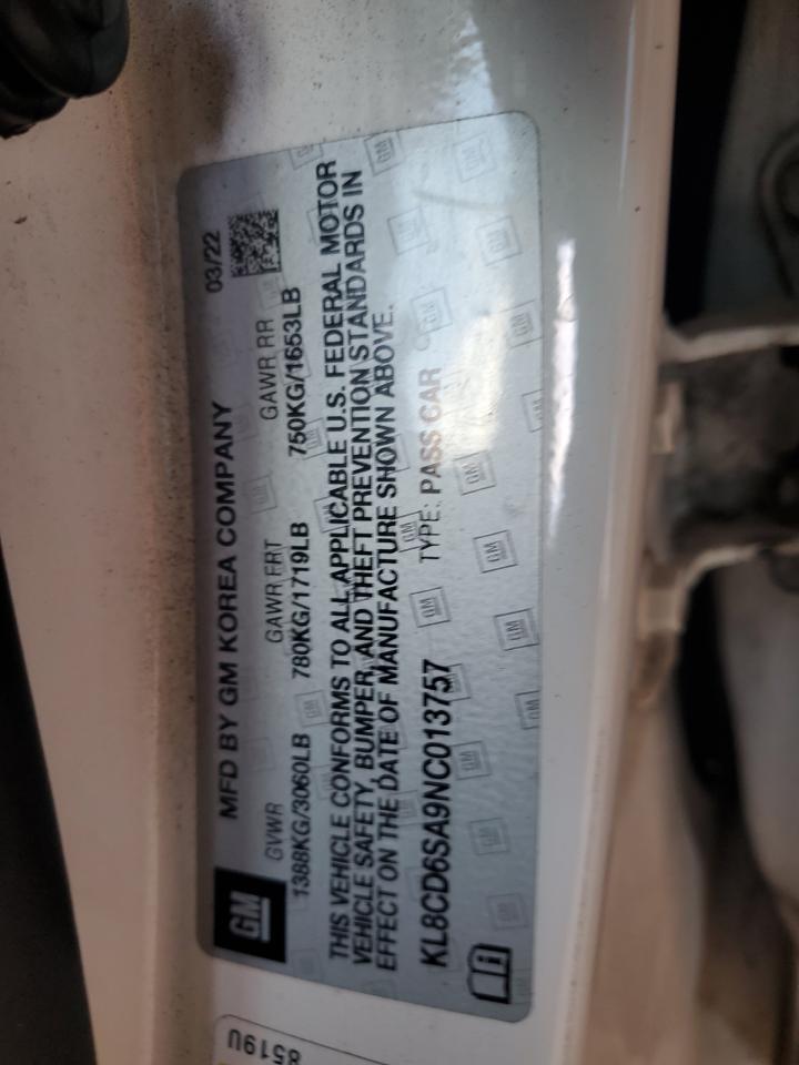 Цвет БелыйЦилиндры 4VIN KL8CD6SA9NC013757Состояние ЗаводитсяПовреждение Передняя или задняяДата аукциона 2025-11-05