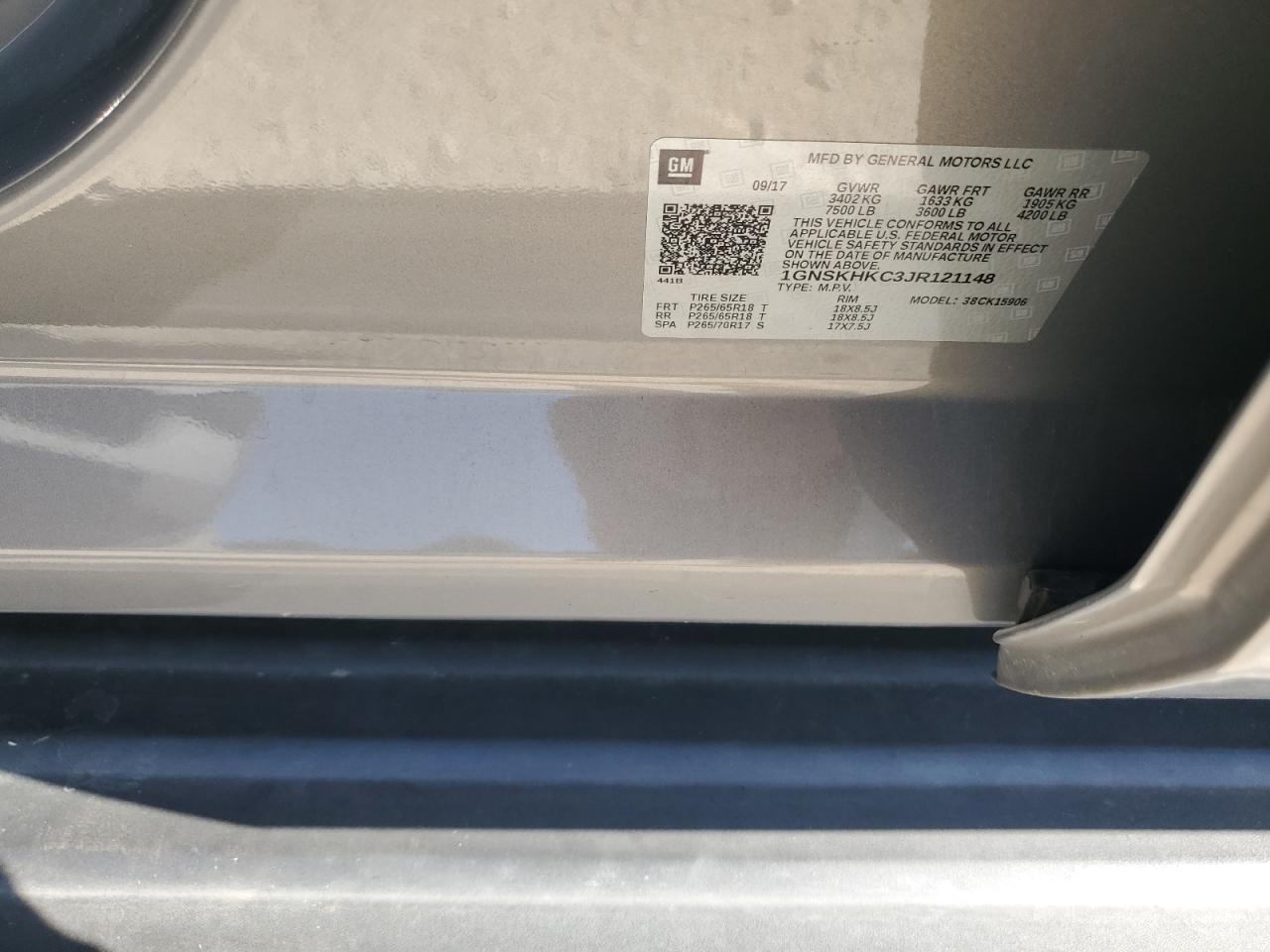 CHEVROLET SUBURBAN 5.3 2018 г.в., 4x4 с задним приводом (1GNSKHKC3JR121148) из США
