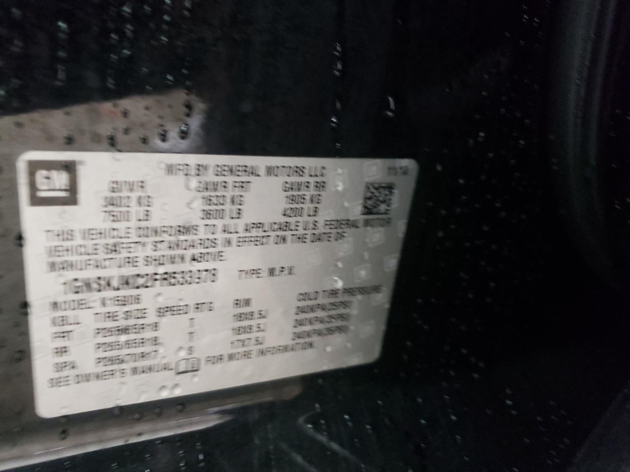 CHEVROLET SUBURBAN 5.3 2015 г.в., 4x4 с задним приводом (1GNSKJKC2FR533978) из США