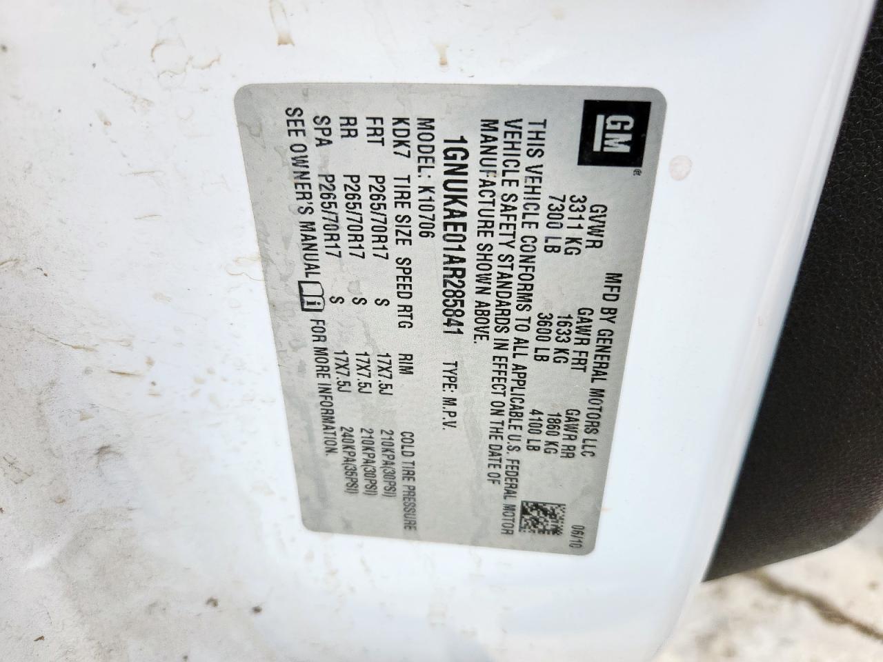 Цвет БелыйЦилиндры 8Привод 4x4 с задним приводомVIN 1GNUKAE01AR285841Состояние НеизвестноПовреждение Передняя или задняяДата аукциона 2025-11-04