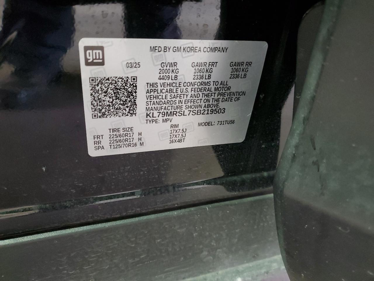 Цвет ЧерныйЦилиндры 3Привод Полный приводVIN KL79MRSL7SB219503Состояние Заводится и едет (проверено)Повреждение Передняя или задняяДата аукциона 2025-11-03