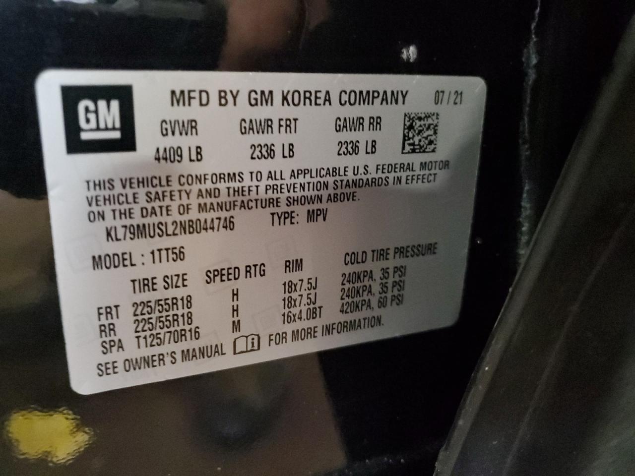 CHEVROLET TRAILBLAZER 1.3 2022 г.в., Полный привод (KL79MUSL2NB044746) из США