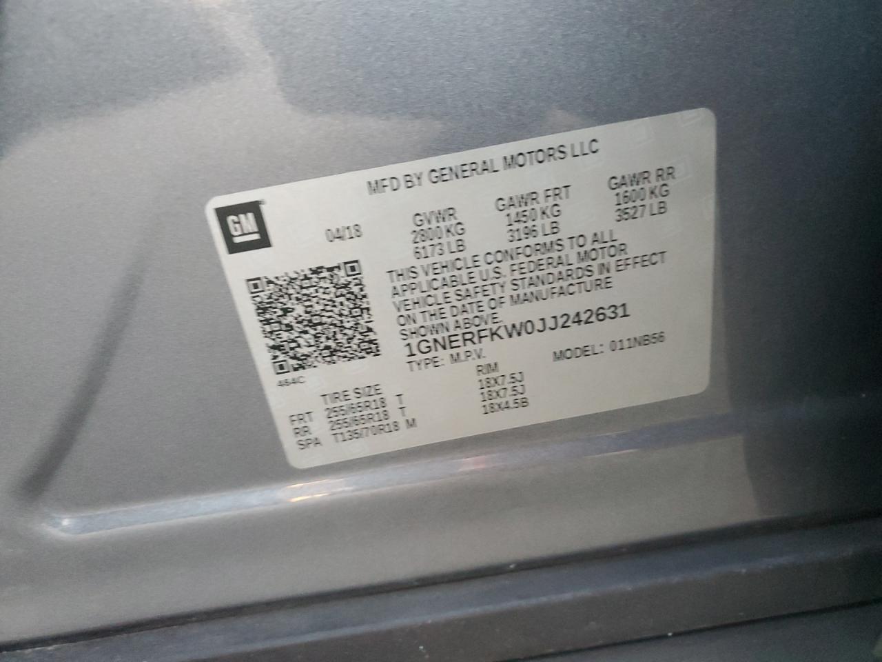Цвет СерыйЦилиндры 6VIN 1GNERFKW0JJ242631Состояние ЗаводитсяПовреждение Передняя или задняя