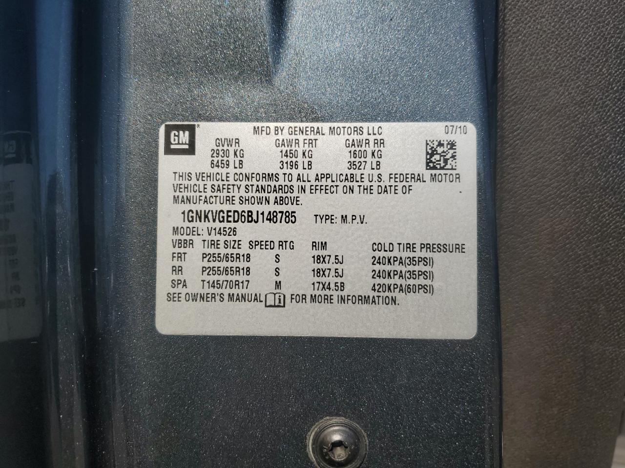 Цвет Древесный угольЦилиндры 6Привод Полный приводVIN 1GNKVGED6BJ148785Состояние Заводится и едет (проверено)Повреждение Передняя или задняя