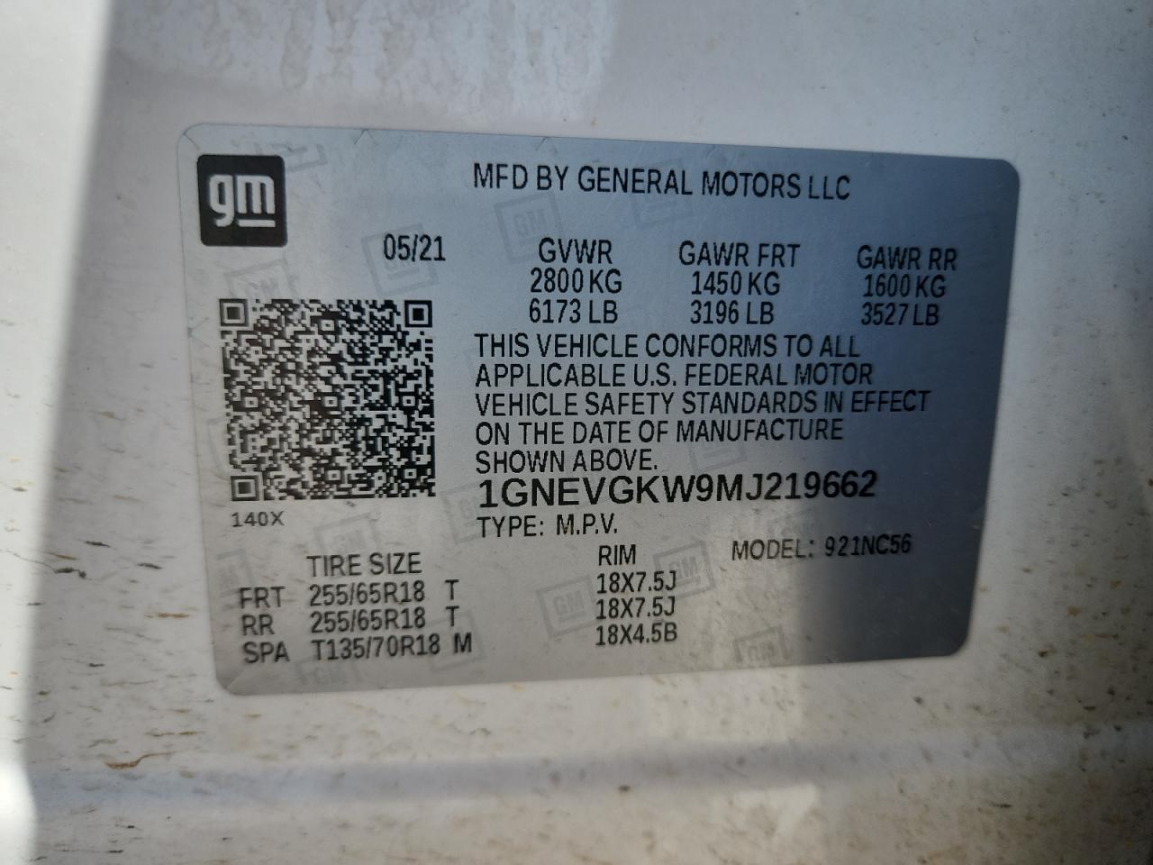 CHEVROLET TRAVERSE 3.6 2021 г.в., Полный привод (1GNEVGKW9MJ219662) из США