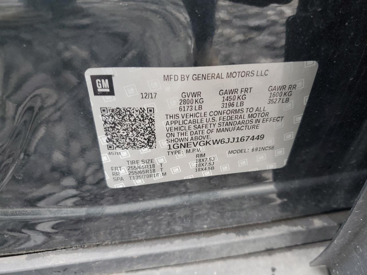 CHEVROLET TRAVERSE 3.6 2018 г.в., Полный привод (1GNEVGKW6JJ167449) из США