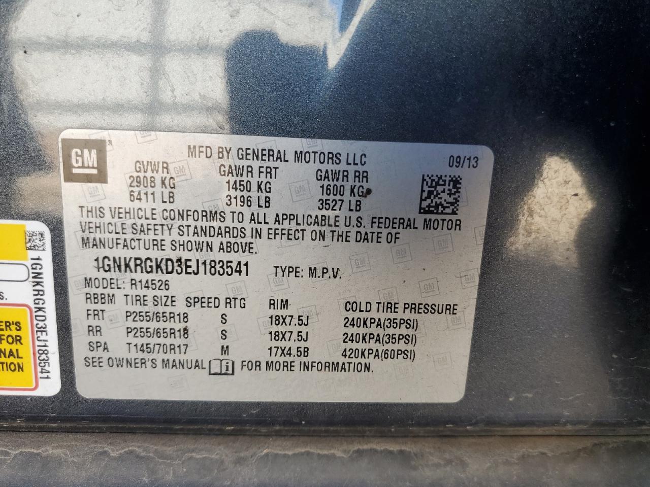 Цвет СерыйЦилиндры 6VIN 1GNKRGKD3EJ183541Состояние Заводится и едет (проверено)Повреждение По бокам