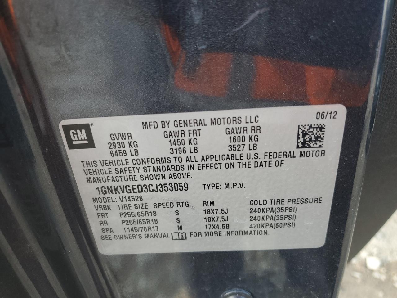 Цвет СерыйЦилиндры 6Привод Полный приводVIN 1GNKVGED3CJ353059Состояние Заводится и едет (проверено)Повреждение НезначительныеДата аукциона 2025-11-03