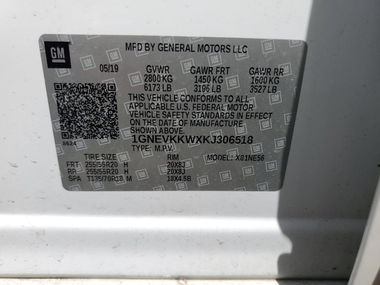 CHEVROLET TRAVERSE 3.6 2019 г.в., Полный привод (1GNEVKKWXKJ306518) из США