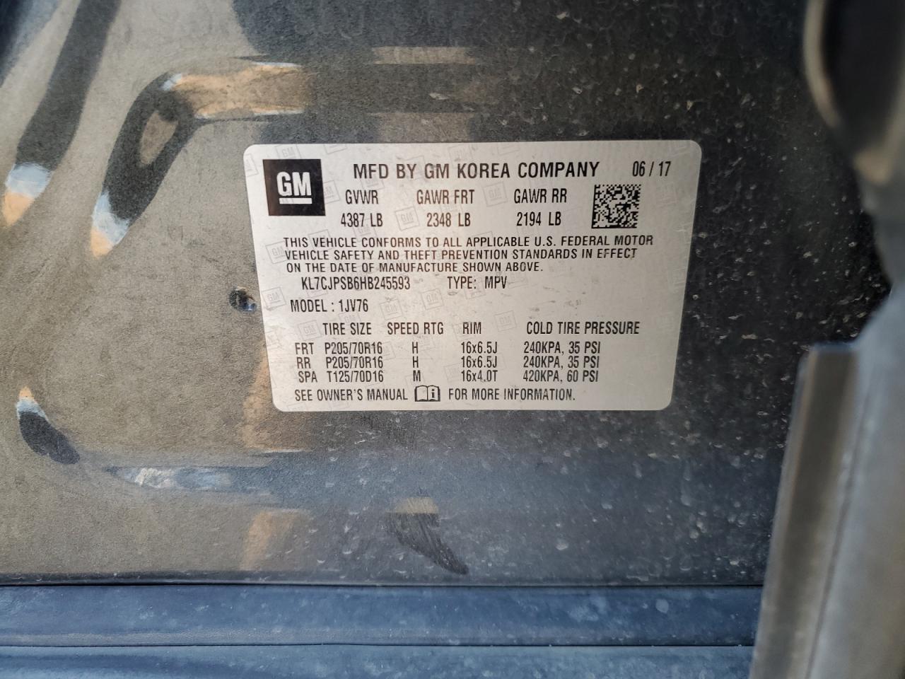 CHEVROLET TRAX 1.4 2017 г.в., Полный привод (KL7CJPSB6HB245593) из США