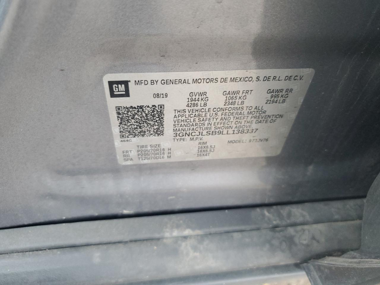 Цвет СерыйЦилиндры 4VIN 3GNCJLSB9LL138337Состояние Заводится и едет (проверено)Повреждение Передняя или задняя