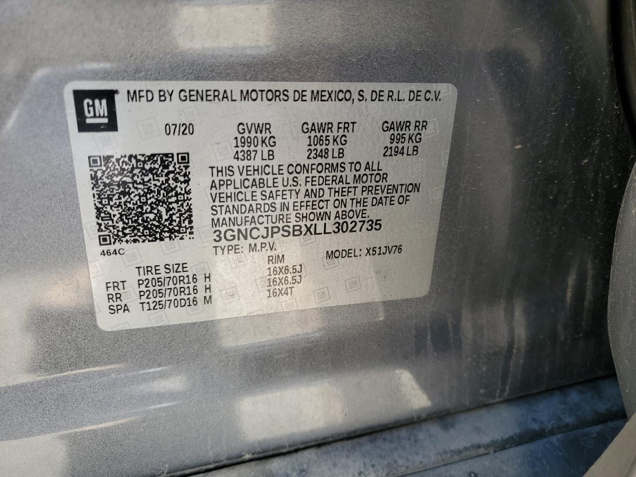 CHEVROLET TRAX 1.4 2020 г.в., Полный привод (3GNCJPSBXLL302735) из США