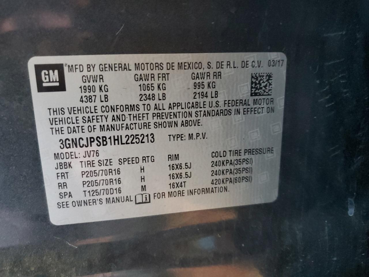 CHEVROLET TRAX 1.4 2017 г.в., Полный привод (3GNCJPSB1HL225213) из США