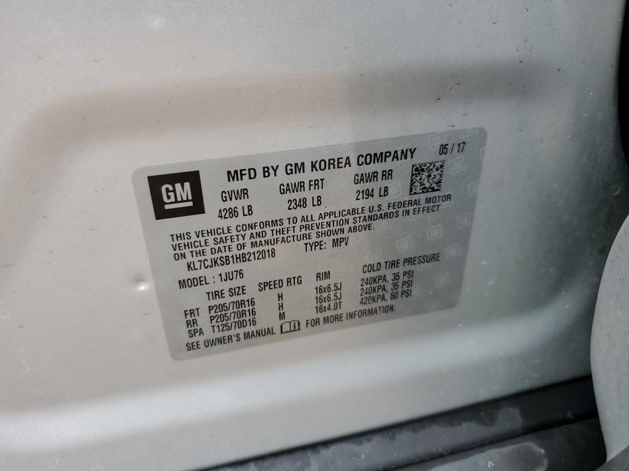 Цвет СеребряныйЦилиндры 4VIN KL7CJKSB1HB212018Состояние Заводится и едет (проверено)Повреждение По бокамДата аукциона 2025-11-04