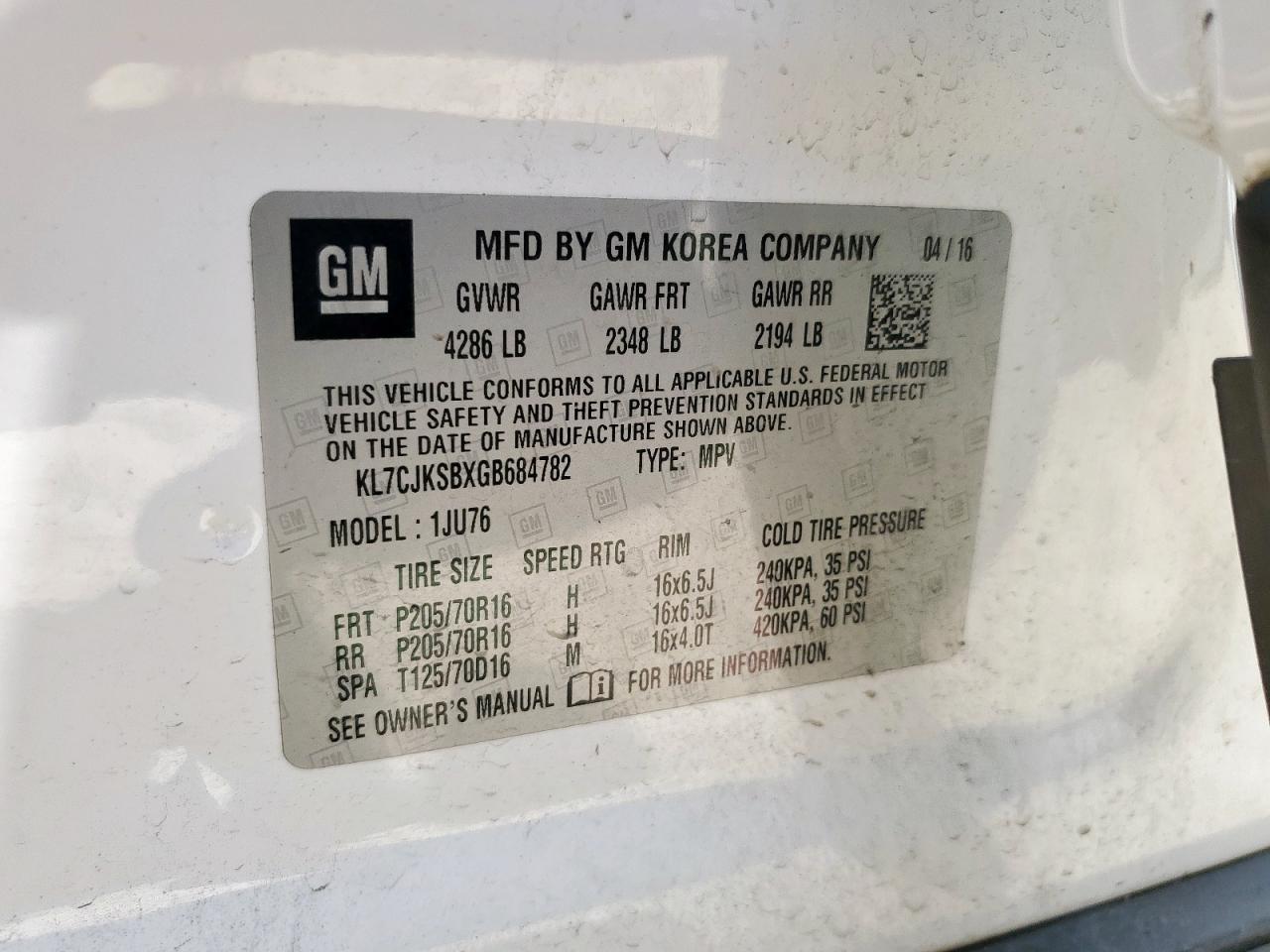 Цвет БелыйЦилиндры 4VIN KL7CJKSBXGB684782Состояние ЗаводитсяПовреждение Передняя или задняя