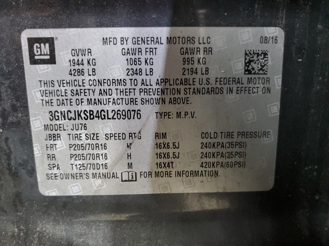 Цвет СерыйЦилиндры 4VIN 3GNCJKSB4GL269076Состояние Заводится и едет (проверено)Повреждение Передняя или задняя
