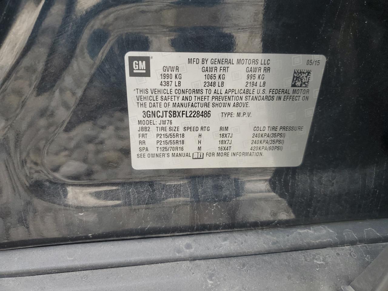 CHEVROLET TRAX 1.4 2015 г.в., Полный привод (3GNCJTSBXFL228486) из США