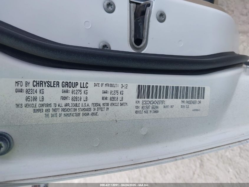 CHRYSLER 300 3.6 2012 г.в., Задний привод (2C3CCACG4CH237971) из США