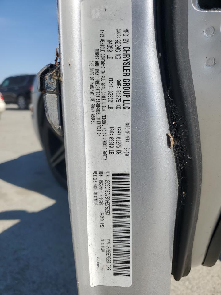 Цвет СеребряныйЦилиндры 6Привод Задний приводVIN 2C3CA5CV8AH276233Состояние Заводится и едет (проверено)Повреждение НезначительныеДата аукциона 2025-11-05