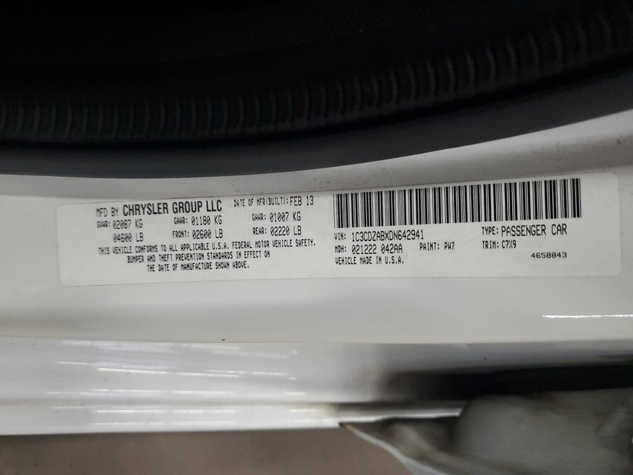 DODGE AVENGER 2.4 2013 г.в., (1C3CDZABXDN642941) из США
