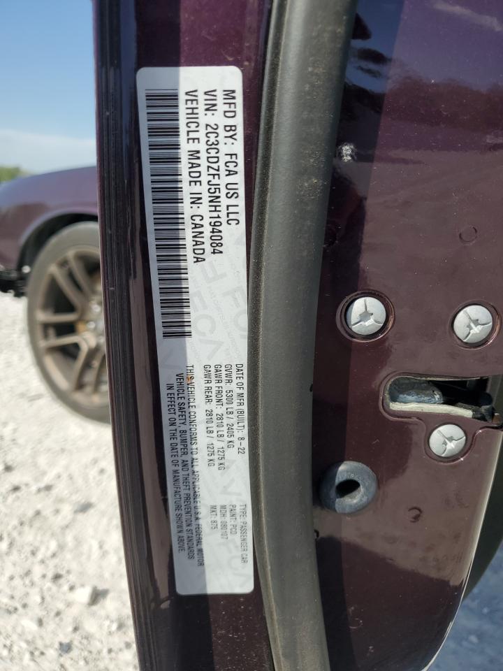 Цвет ФиолетовыйЦилиндры 8Привод Задний приводVIN 2C3CDZFJ5NH194084Состояние НеизвестноПовреждение Передняя или задняяДата аукциона 2025-11-04