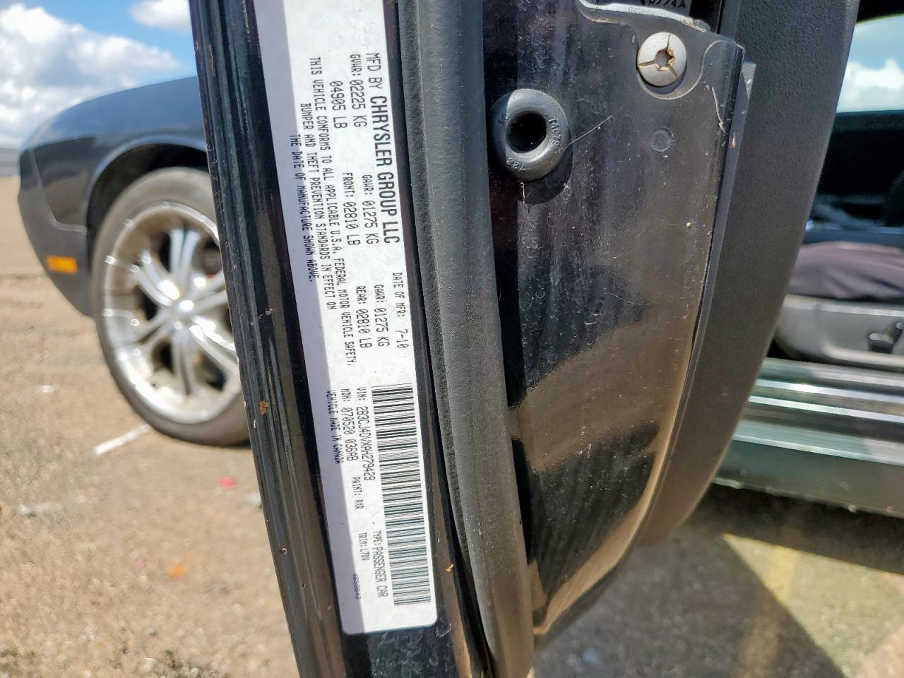 DODGE CHALLENGER 3.5 2010 г.в., Задний привод (2B3CJ4DVXAH279429) из США