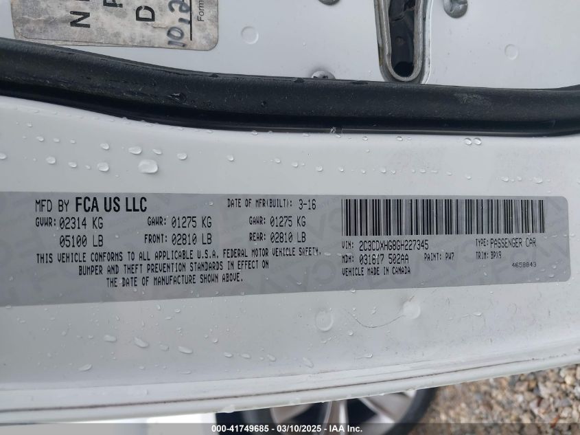 DODGE CHARGER 3.6 2016 г.в., Задний привод (2C3CDXHG8GH227345) из США