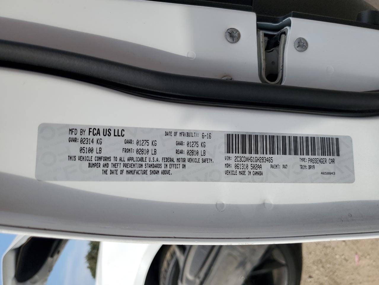 DODGE CHARGER 3.6 2016 г.в., Задний привод (2C3CDXHG1GH283465) из США