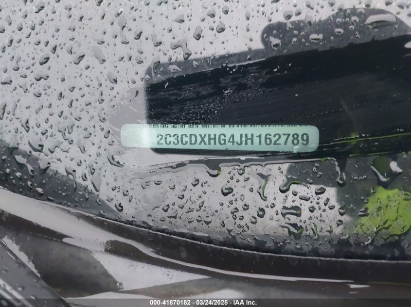 Цвет ЧерныйЦилиндры 6Привод Задний приводVIN 2C3CDXHG4JH162789Состояние СтационарноПовреждение Левая сторона